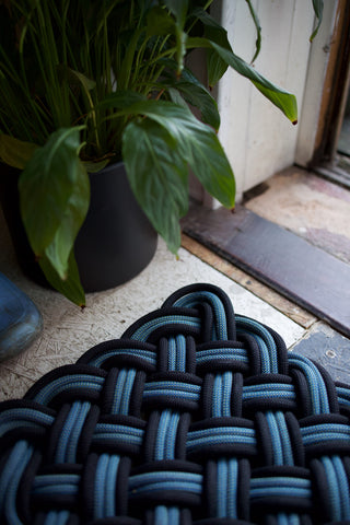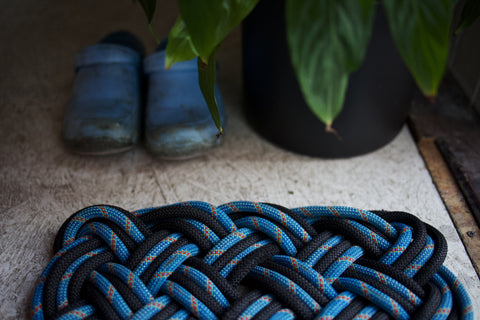 Retired climbing rope woven to create unique recycled mats.